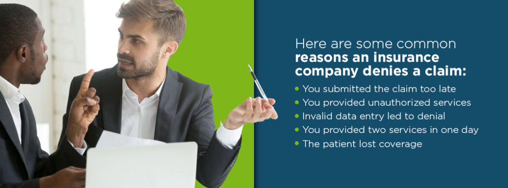 If your insurance claim was denied, try not to be alarmed. It’s important to first determine the cause of the denial and then take steps to fight for reimbursement. Here are some common reasons an insurance company denies a claim: