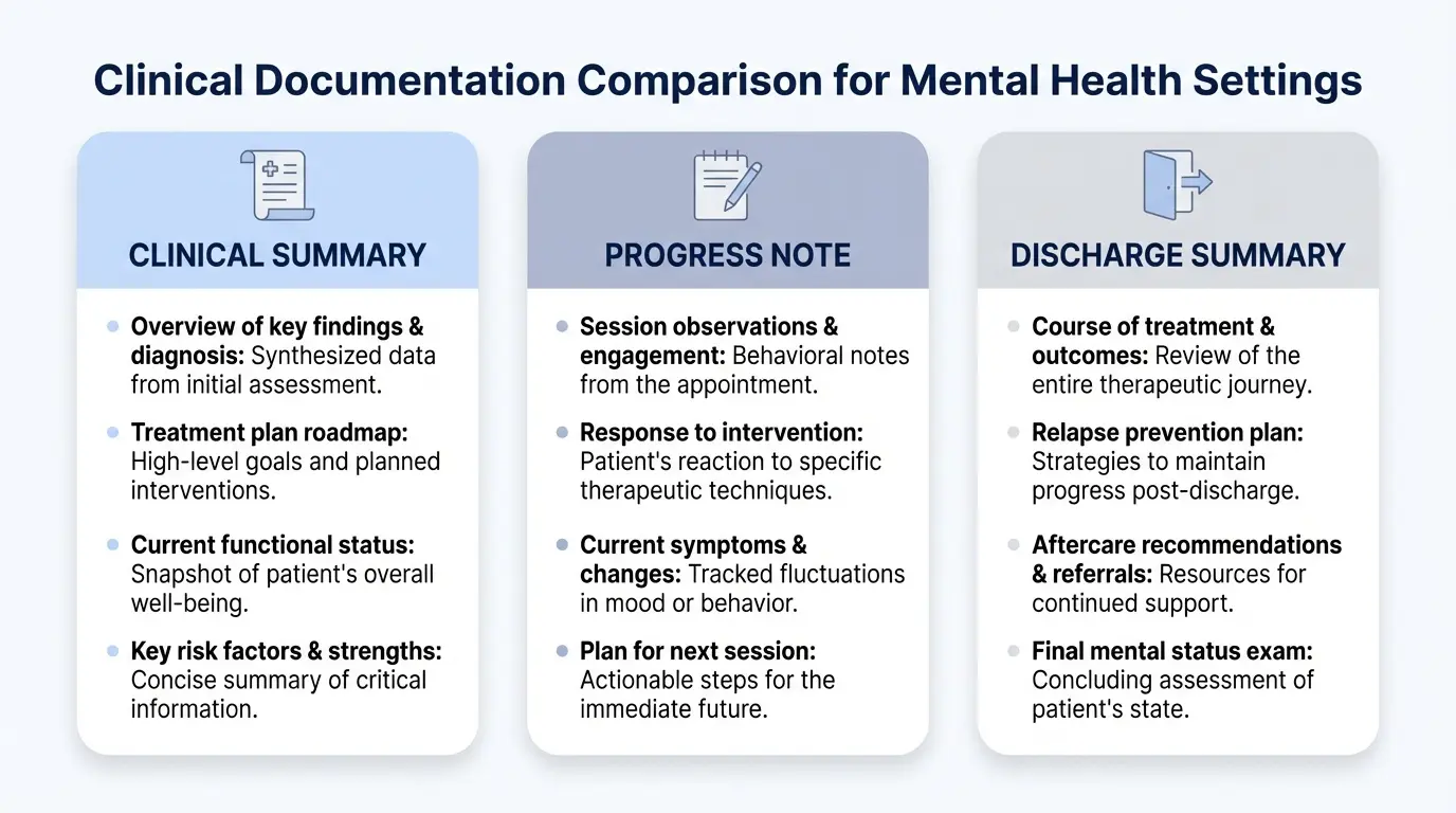 - Review a mental health clinical summary example to see best practices in action