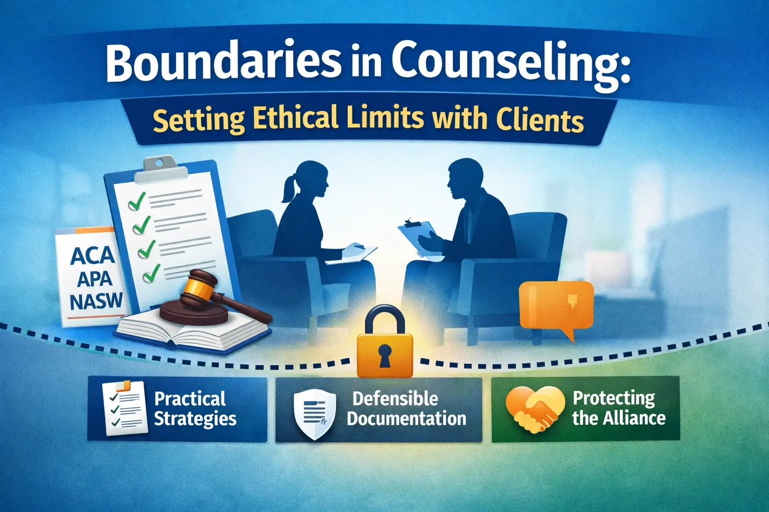 Boundaries in counseling are essential to protecting both the therapeutic alliance and clinician sustainability. This guide explores therapist-client boundaries, setting boundaries in therapy without causing rupture, and how to distinguish flexibility from boundary drift. Featuring practical scripts, ethical decision-making frameworks, and defensible documentation guidance, this article helps clinicians maintain therapeutic boundaries in mental health while safeguarding their license and long-term career.