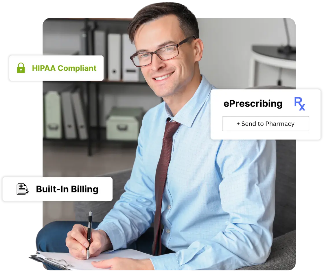 A psychiatry EHR (electronic health record) is software designed specifically to meet the clinical, documentation, and compliance needs of psychiatrists and psychiatric nurse practitioners. Unlike general medical systems, a psychiatric EMR includes specialty-specific templates for evaluations, mental status exams, and progress notes, along with integrated tools for medication management, e-prescribing, and outcome tracking. The best EHR for psychiatry also supports secure telehealth, patient engagement through a portal, and audit-ready documentation that satisfies payer and regulatory requirements.
